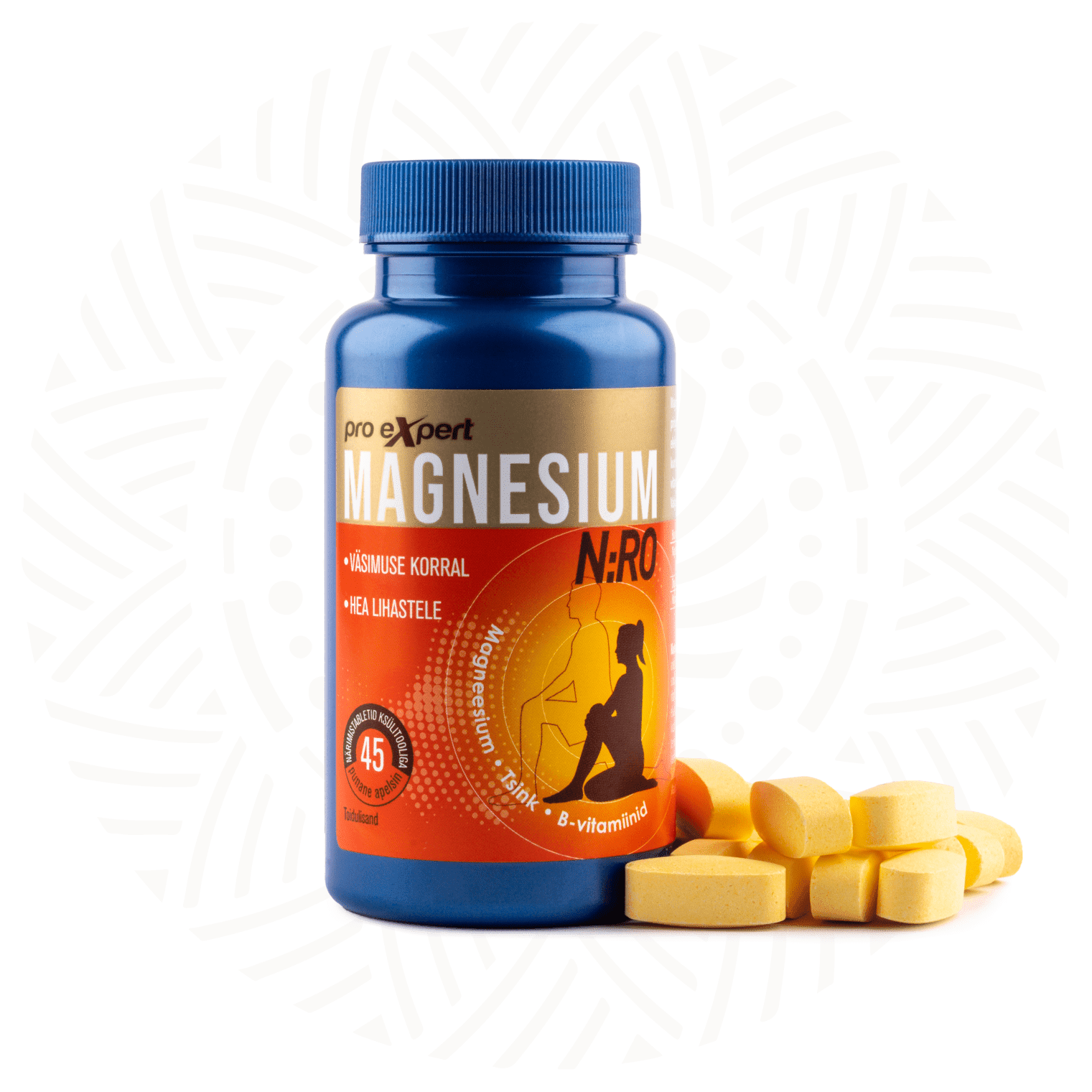 Magnesium Pro Expert NRO is a specialized dietary supplement designed for use during physical exertion, fatigue, and exhaustion, with magnesium, zinc, and B vitamins to restore electrolyte balance.